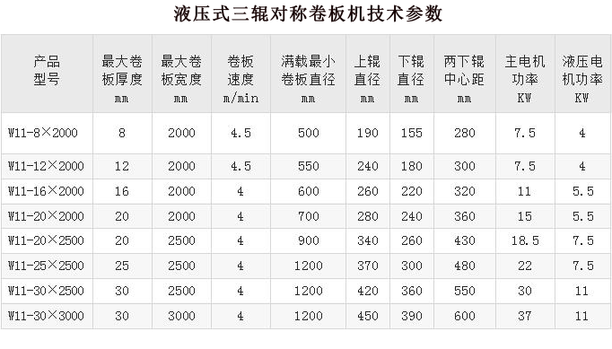 液壓三輥對稱式卷板機是我公司開發的具有卷彎和折彎功能的專用設備,可將金屬板材卷成圓形、弧形和一定范圍內的錐形工件;通過聯接專用折彎模具,本機還可具有板材折彎的功能。可廣泛使用于鍋爐、化工、金屬結構及機械制造行業等領域。